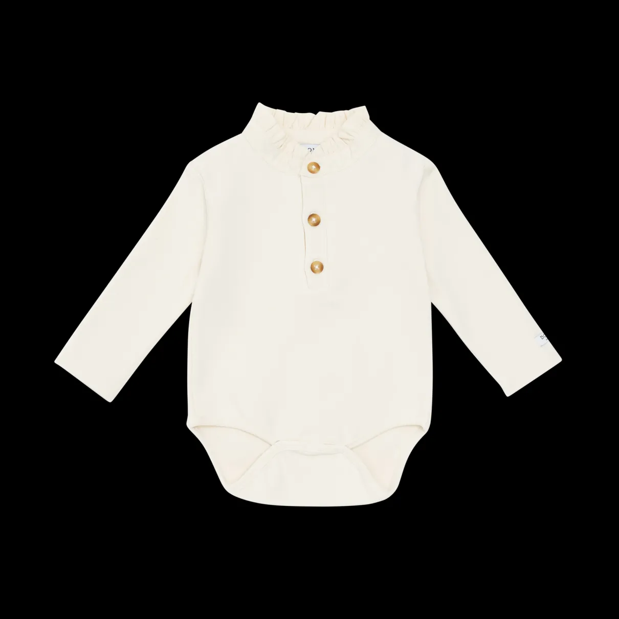 Fall awaits in the Bouches Bodysuit. Made from organic cotton, with delicate cotton ruffle details around the collar, this little bodysuit is truly adorable.