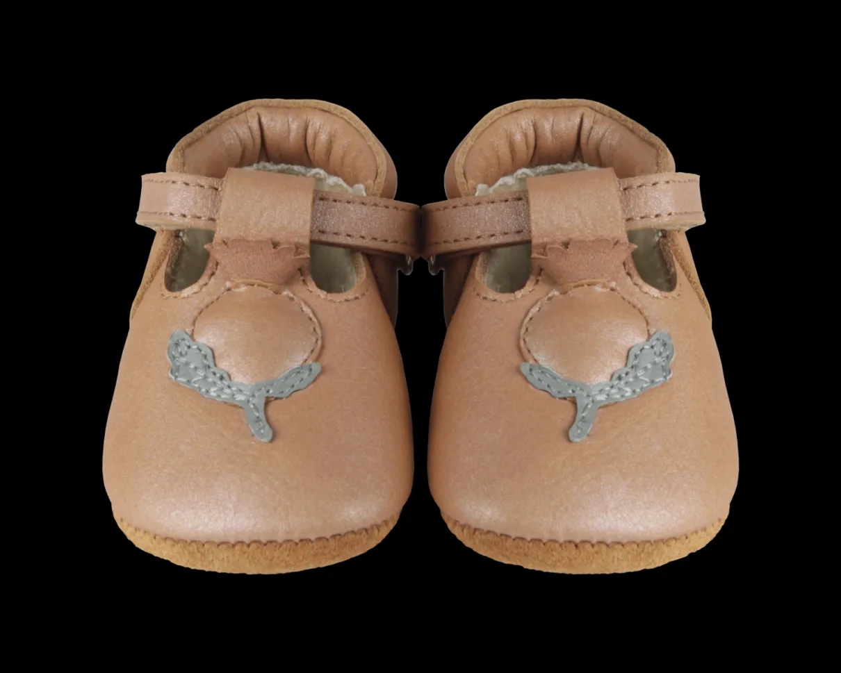 First steps! The T-bar design on the Carlie lining shoes ensures comfort and style. Made from 100% premium cow leather, fully lined with faux fur and complete with adjustable velcro straps. The cute rosehip design adds signature Donsje style.