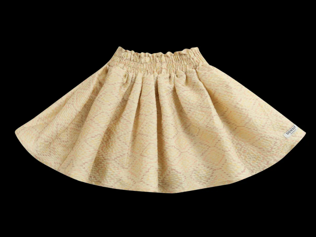 Haute Couture for girls! The Diedee Skirt is made for dancing and whirling gracefully. The fabric feels like silk and features a unique embroidered pattern. A ruffled stretchy waistband ensures comfort and fit. Pair it with the Donsje Leoniek Jacket, or pair with a Donsje blouse or sweater.