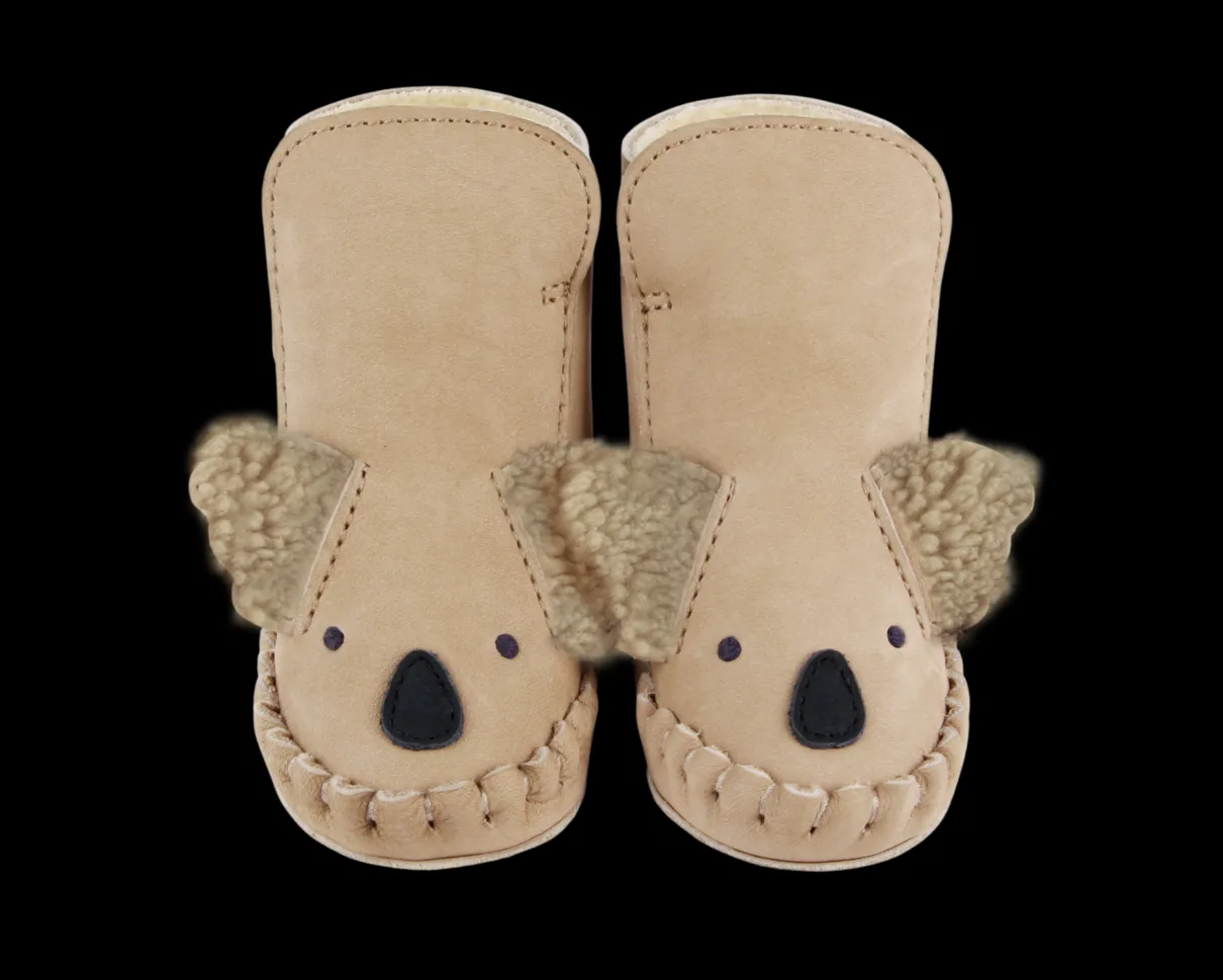 Koala-ty time! Step into winter adventures in Kapi Exclusive Booties! These warmly lined boots have a wide entry to fit every little foot. Our signature Donsje character, a fluffy Koala, on the toe of the shoe, adds a unique, eye-catching detail to the design! The Kapi Exclusive booties are perfect, well-fitting shoes for long-awaited winter walks! Made from 100% premium leather.