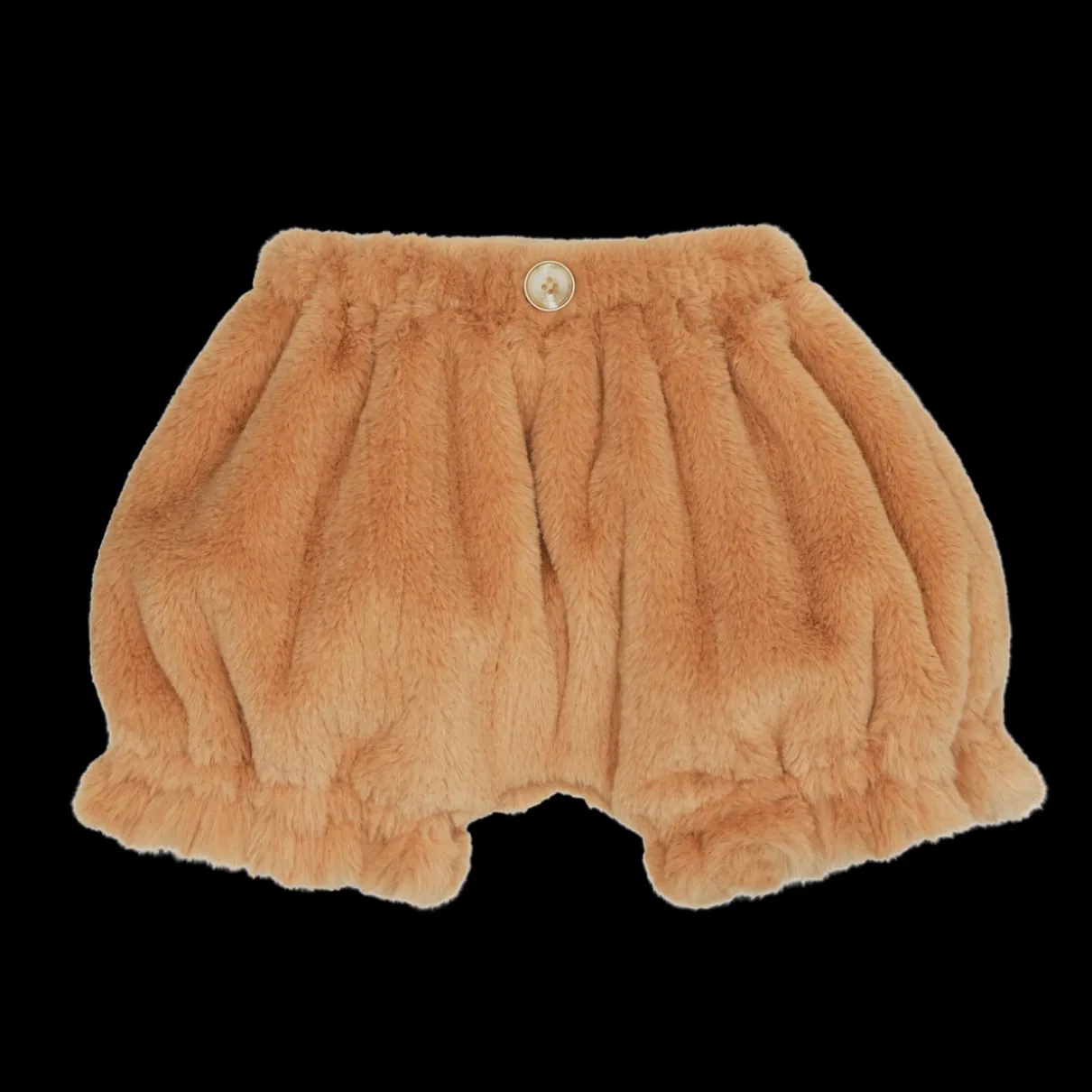 Faux fur winter fun! The Mou bloomers are a winter wardrobe essential. Fully lined for warmth, featuring a stretchy waistband, decorative front fastening, and elasticated leg openings. The soft faux fur finish is beyond adorable; pairs perfectly with the Maudi Romper.