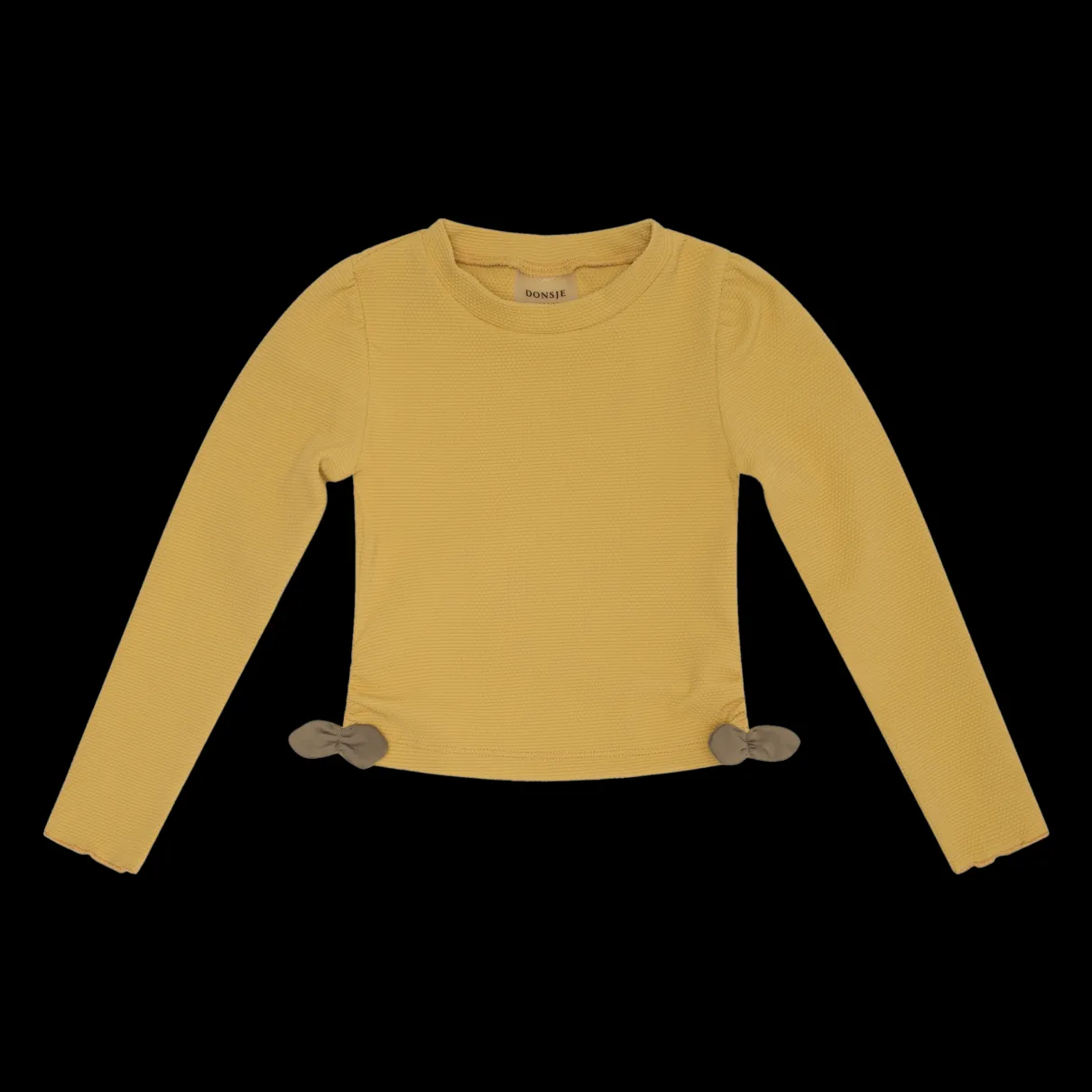 Squeeze the day! This pretty swimshirt will keep your little one safe from the hot summer sun in style. The shirt features puffed sleeves, embroidered Donsje logo and smocked detailing. Match the Nia swimshirt with the Sisi swimming briefs for a statement sunny yellow look.