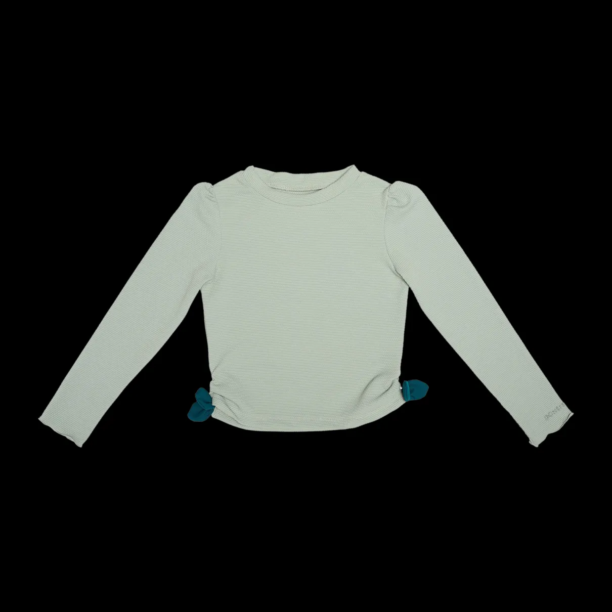 You’re one in a melon! This pretty swimshirt will keep your little one safe from the hot summer sun in style. The shirt features puffed sleeves, embroidered Donsje logo and smocked detailing. Match the Nia swimshirt with the Sisi swimming briefs and Quana headband for a statement look.