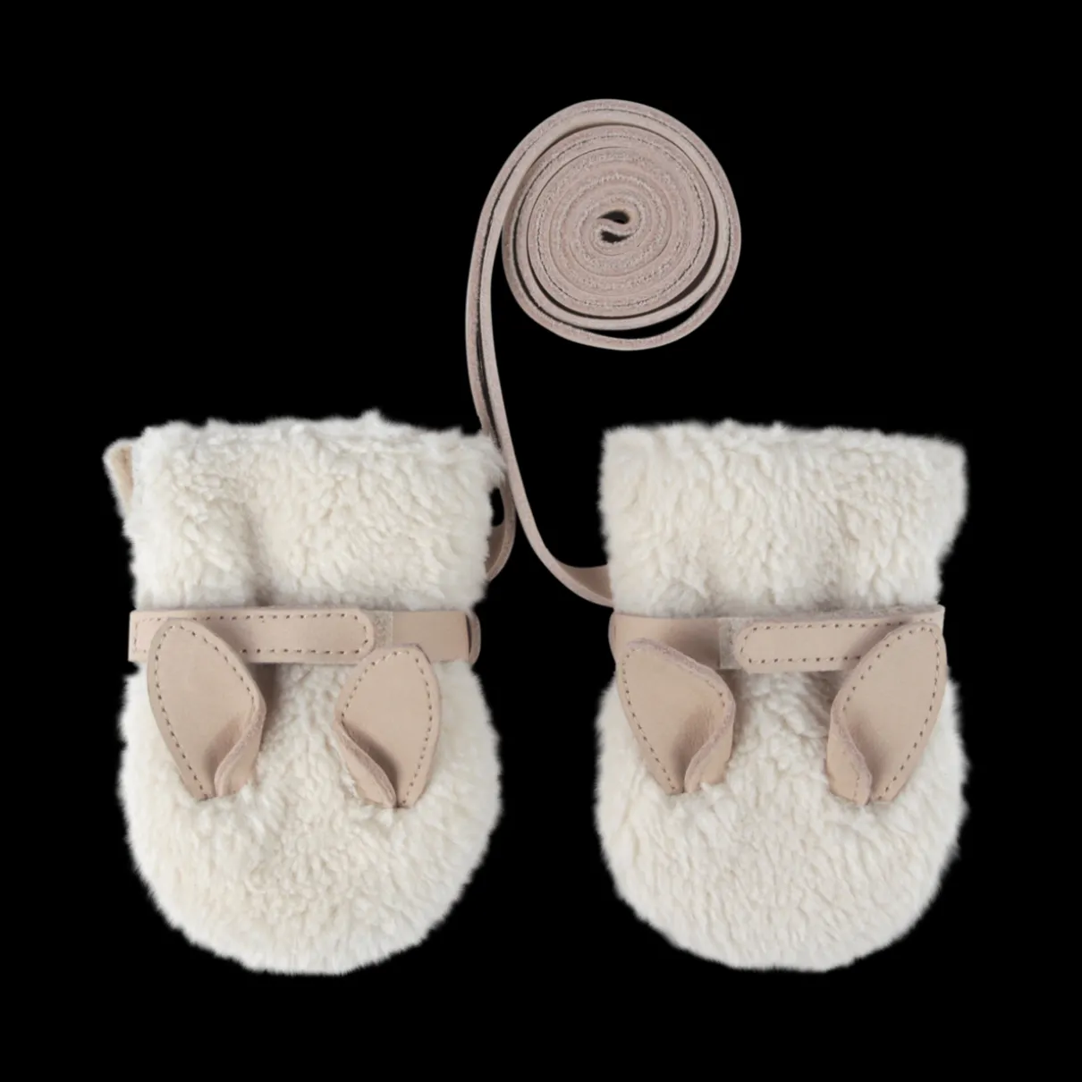 Cuddly Bunny! Those sweet little fingers will stay warm and snug in these irresistibly cute bunny mittens. The adjustable velcro straps and a leather cord ensure that the mittens won’t slip off the hands.