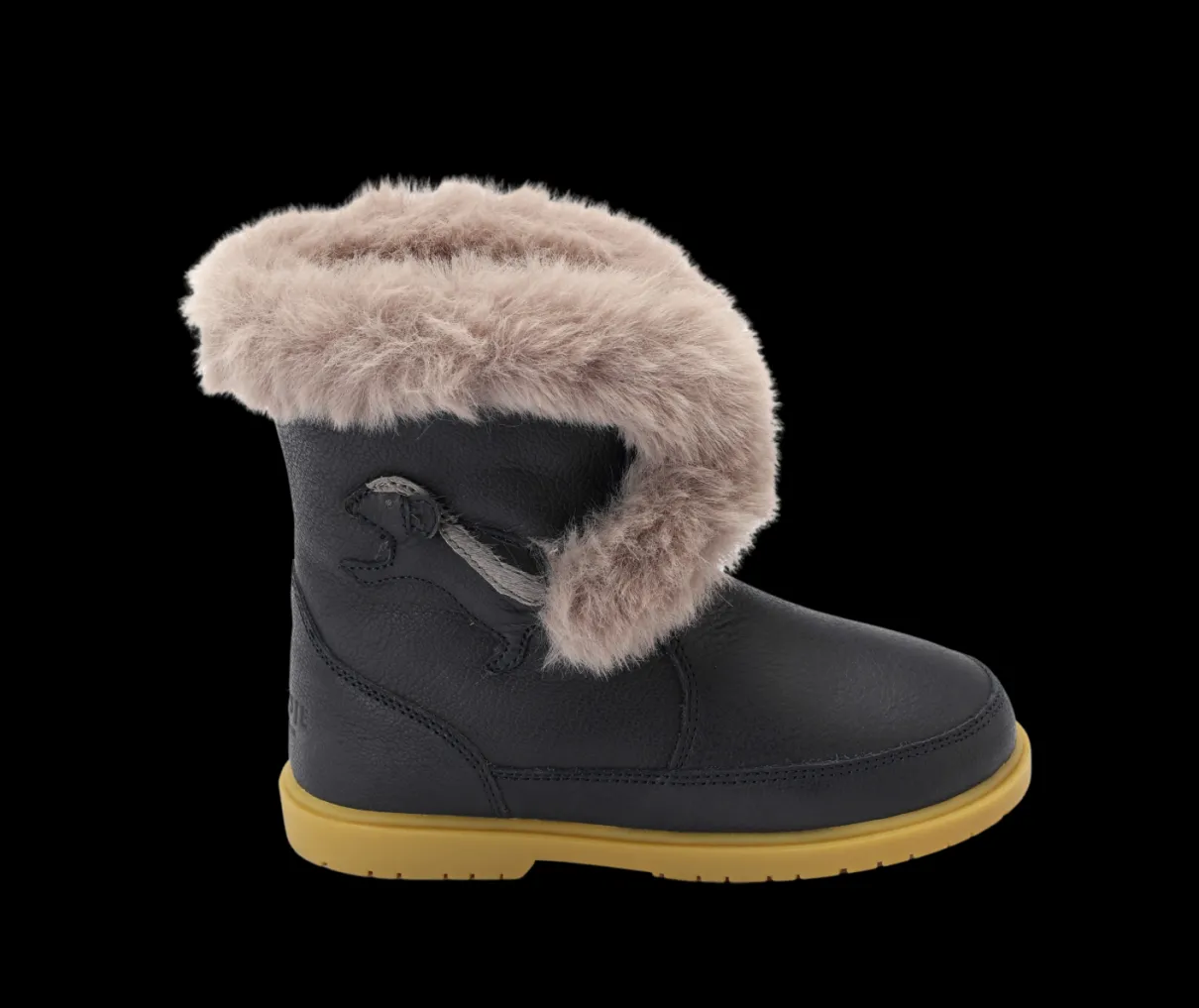 Furry and sweet! Walk into the world of wonders with these adorable Tusi boots! Thanks to a lovely skunk design, this pair will instantly become your little one’s first choice. Crafted with 100% premium cow leather and soft sheep wool to keep those sweet toes warm and comfortable.