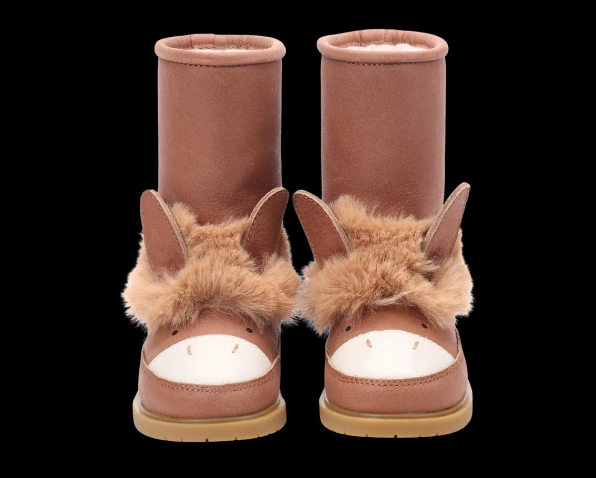 Looking re-donk-ulously good! They are instanly recognizable thanks to the exclusive design. The leather boots are lined with shearling, have a sturdy outsole and are a real eye-catcher. Children can easily slip their feet in and they stay in place nicely during walking, running and playing. The boots fit true to size, but in case of doubt we recommend to choose one size larger. Bring it on winter!