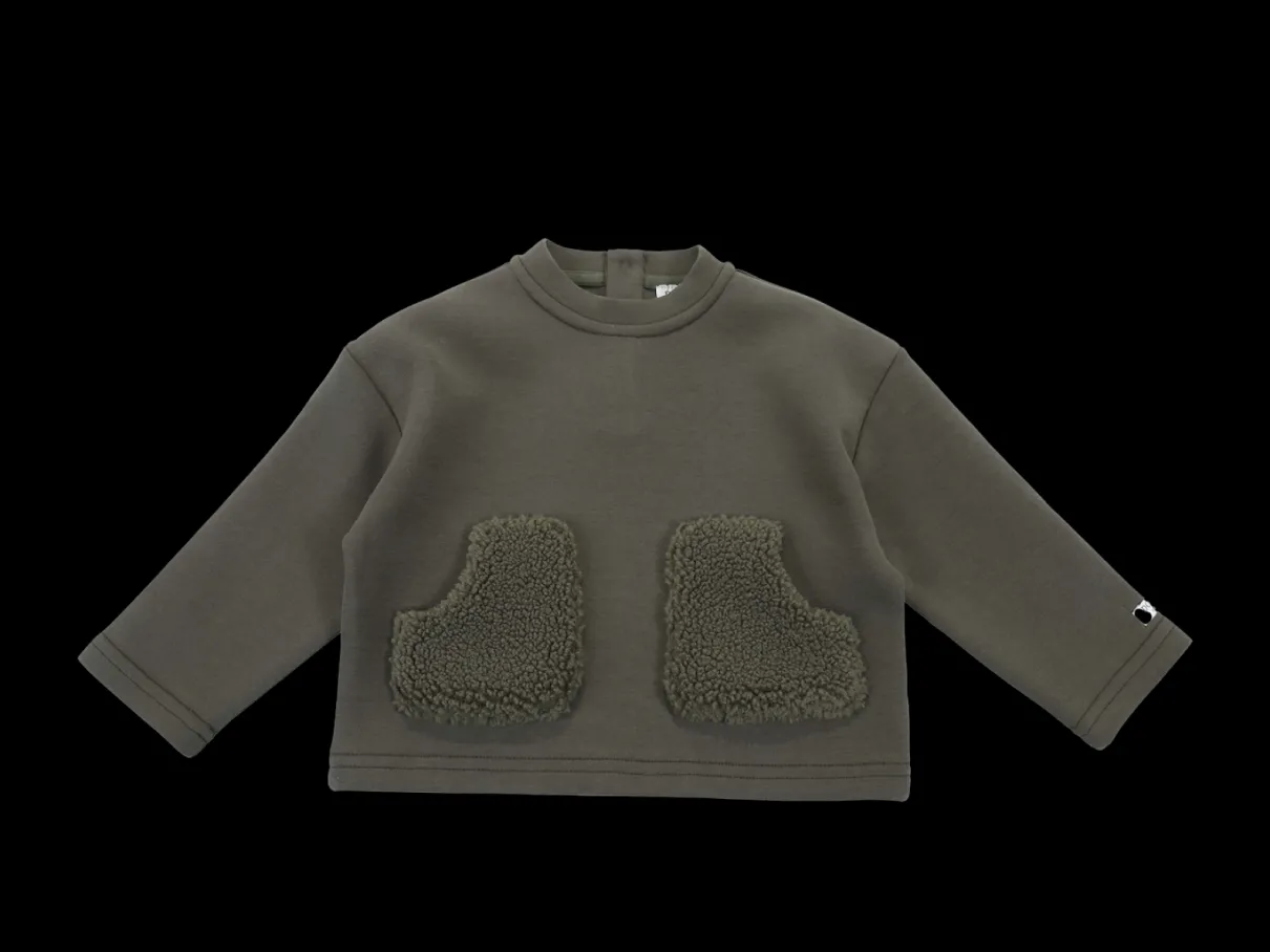 Your new winter favourite! The Wies sweater with faux fur shearling front patch pockets is undeniably cute. Fully lined for warmth and complete with button fastenings along the back. Make the perfect set and pair it with the Splint trousers.