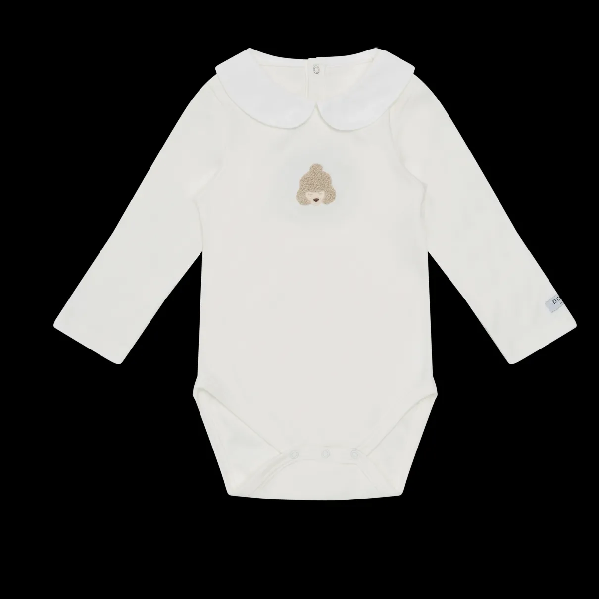 The Davo bodysuit is the sweetest wardrobe essential! The cute Poodle embroidery and lovely Peter-pan collar make the bodysuit unique. 100% organic cotton is soft on the skin and offers perfect breathability.