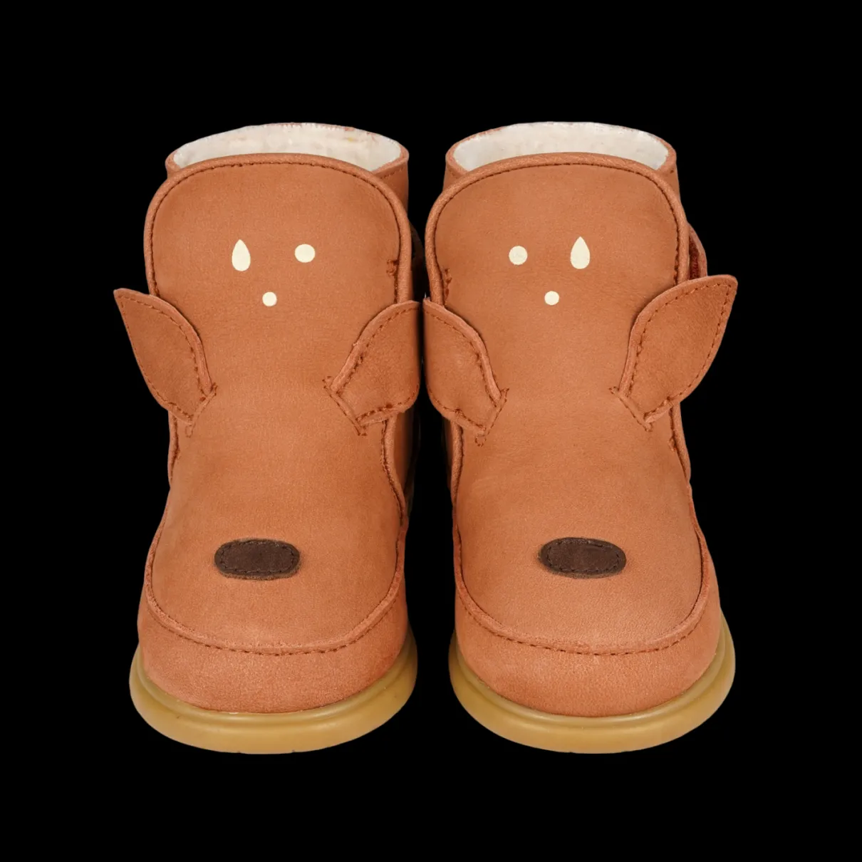 The Dubu Classic Toddler Shoes are the perfect companion for outdoor adventures, offering just the right support for those first steps. The flexible outsole with a slightly elevated heel provides enhanced support. The adjustable velcro fastening strap ensures a snug fit around the ankle, while the reinforced structure particularly around the heel, provides the necessary support and stability for your little one’s growing feet. Our signature Donsje animal characters add a stylish finishing touch to the 100% premium leather shoes.