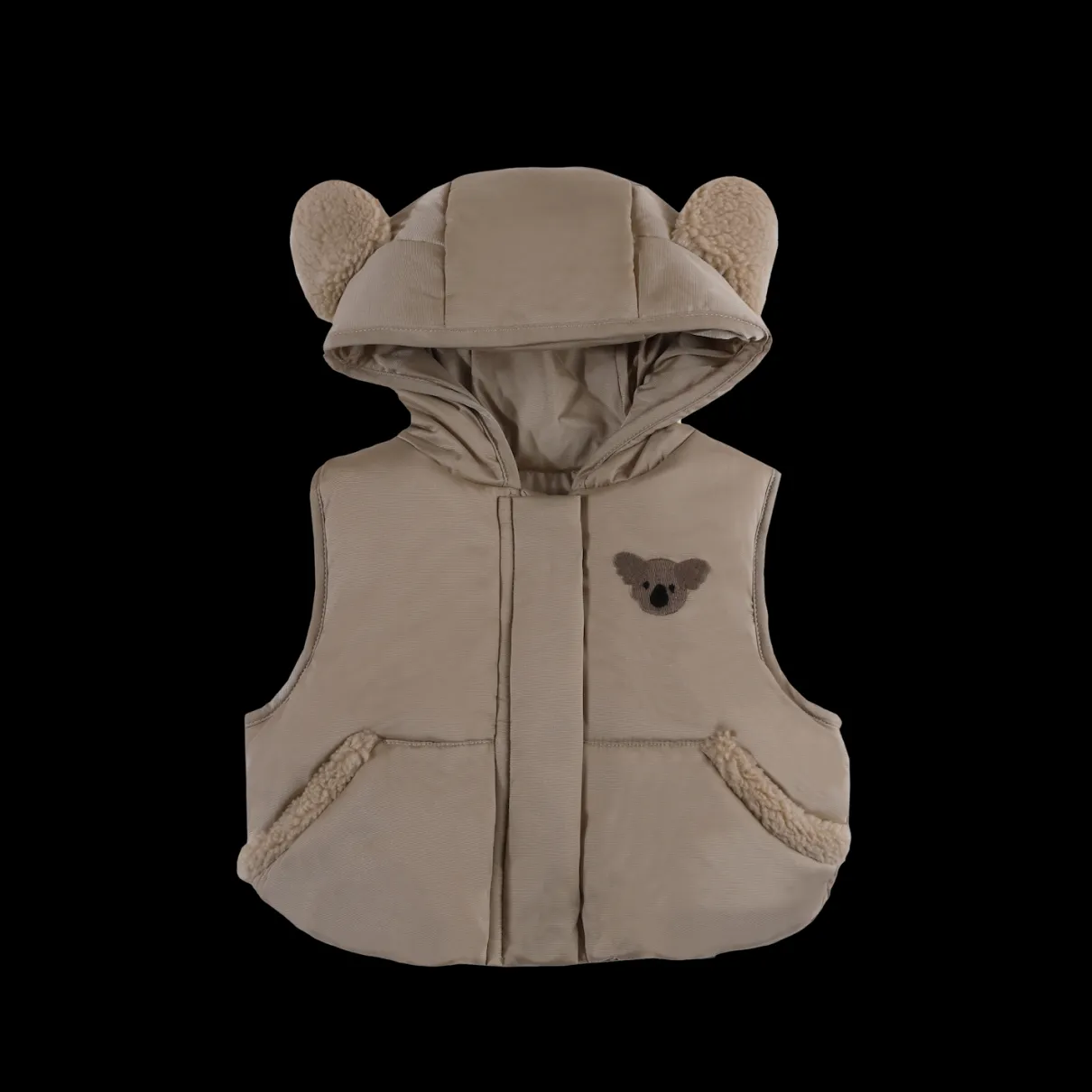 The Luijx Bodywarmer is a perfect item for when the temperature drops. This bodywarmer offers warmth and style in equal dose, featuring a charming koala embroidery and a hood with adorable koala ear details. This outer layer comes with front pockets, concealed zip fastening through the front and an elastic inner hem for extra comfort and warmth.