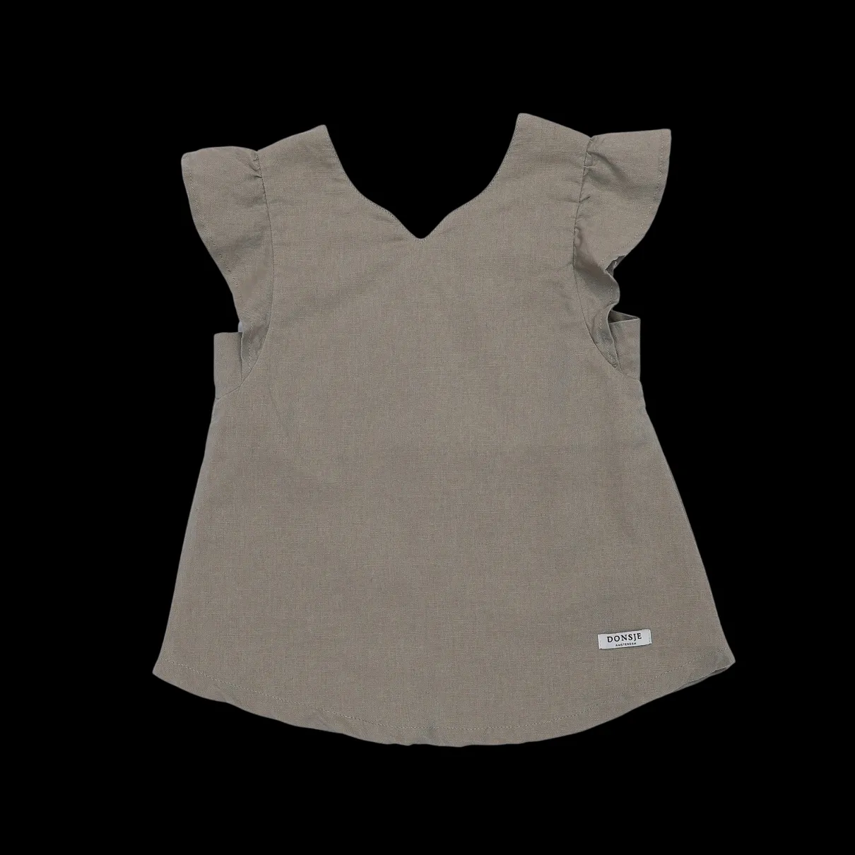 This adorable design makes every outfit unique. It is cut from lightweight fabric into a charming silhouette with ruffled shoulders and a split on the back. Match it with classic leggings or shorts, and your little one will look amazing! It’s perfect for everything from picnics to family reunions. The perfect start for every mini-wardrobe!