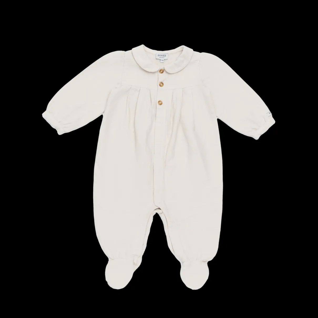 All-in-one dreams! The Nanieke onesie is charming and sweet, made from 100% cotton with snap fasteners through the bottom and legs; the attached socks will keep little legs snug this winter.
