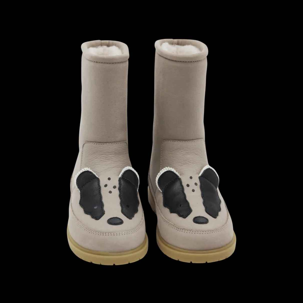 Brave little badger Our signature animal design and intricate details make this pair an instant favourite. Crafted from premium leather and lined with the softest sheep wool, these boots are comfortable, warm and fun. An ideal companion for exploring the world!